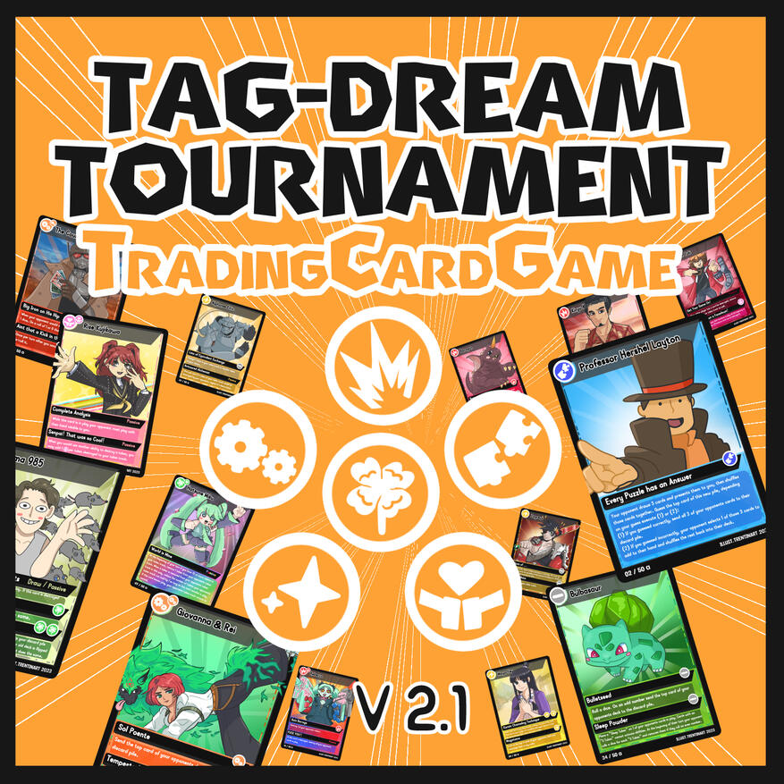 Tag-Dream Tournament is an online trading card game developed and drawn by me as a way to doodle characters I like as well as to make a cool game!